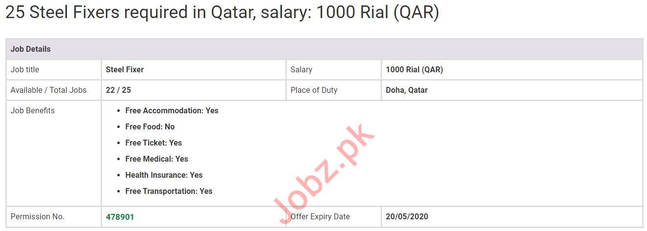 A well established Qatar based company is looking for Steel Fixer in Doha Qatar through Adnan Malik Enterprises overseas employment promoters. Free Accommodation, Free Food, Free Ticket, Free Medical, Health Insurance, Free Transportation are provided by the company.