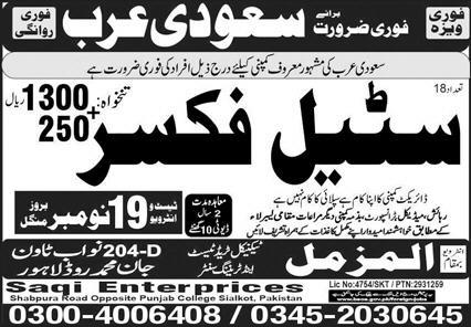 Al Muzammil Technical Trade Test & Training Center invites applications for job positions advertised in daily Express dated 14 November 2024 for following vacancies in Riyadh, dammam Saudi Arabia.