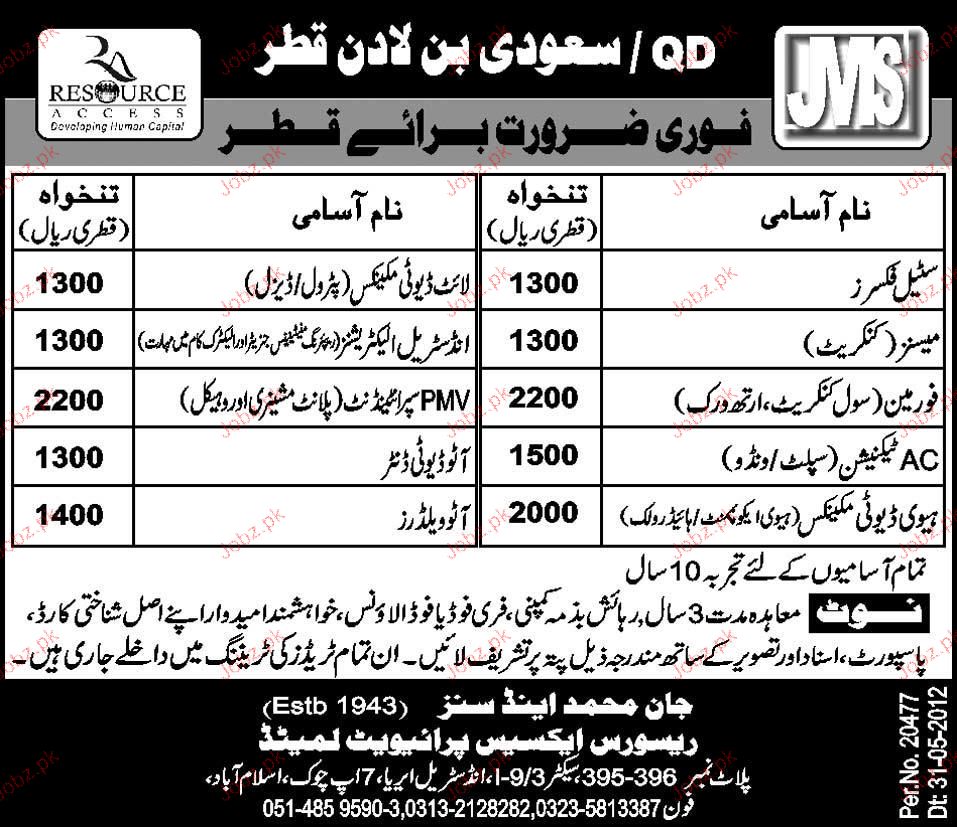Steel Fixer, Mason, Foreman, AC Technicians Job Opportunity