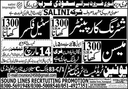 Sound Lines Recruiting Promotion invites applications for job positions advertised in daily Express dated 5 March 2022 for following vacancies in Makkah, makkah Saudi Arabia.