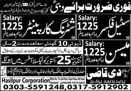 The Qazi Trade Test & Training Center latest Overseas Construction jobs and others can be applied till October 25, 2023 or as per closing date in newspaper ad. Read complete ad online to know how to apply on latest The Qazi Trade Test & Training Center job opportunities. Extra hours work allowed to earn more. Free accommodation, medical and transport may be available.
