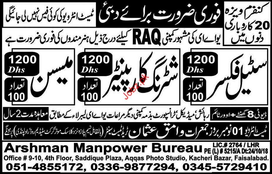 Vacancies in Arshman Manpower Bureau Advertisement November 2018