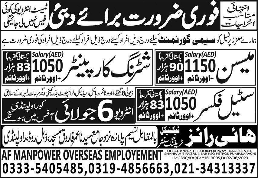 High Rise Technical Training Center invites applications for job positions advertised in daily Express dated 4 July 2023 for following vacancies in Dubai, dubai Dubai.
