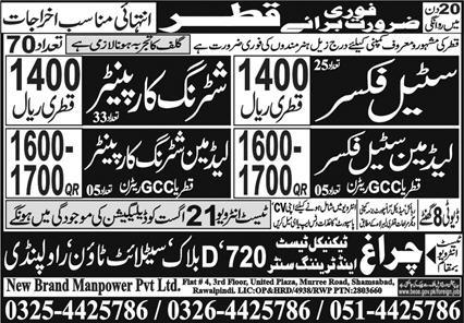 Chiragh Enterprisers Overseas Employment Promoters is looking for candidates for following posts as per job advertisement published in daily Express Newspaper of August 18, 2024 for location Qatar, qatar Qatar: