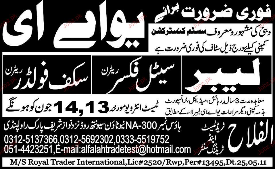 Steel Fixer, Scaffolder and Labors Job Opportunity