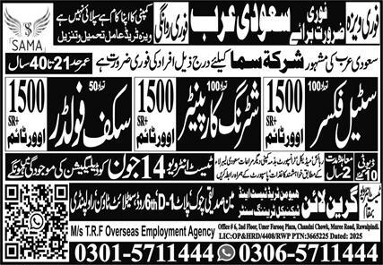 Green Line Human Resource Manpower Riyadh, makkah Saudi Arabia invites applications from eligible candidates for the post of steel fixer, scaffolder and shuttering carpenter as per advertisement of June 13, 2025 published in daily Express Newspaper. Intermediate and Matric etc. educational qualification will be preferred.