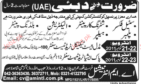 Steel Fixer, Shuttering Carpenter, Electricians Required