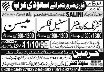 Harmain Trade Test & Technical Training Center invites applications for job positions advertised in daily Express dated 4 March 2022 for following vacancies in Dammam, dammam Saudi Arabia.
