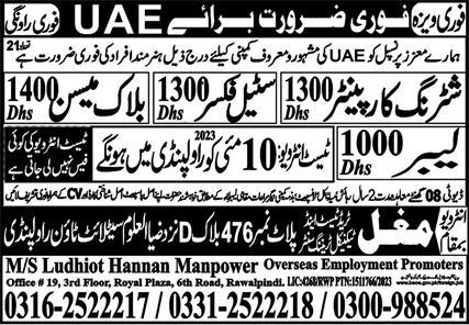 Vacant posts including shuttering carpenter, steel fixer, labor and block mason are announced in Mughal Trade Test & Technical Training Center Sharjah, abu dhabi UAE as per 6 May 2023 advertisement in daily Express Newspaper. Preferred Education is Matric and Intermediate etc.
