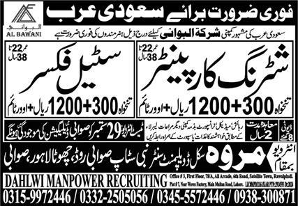 Marwa Skill Development Center Dammam, makkah Saudi Arabia invites applications from eligible candidates for the post of steel fixer and shuttering carpenter as per advertisement of September 25, 2024 published in daily Express Newspaper. Educational qualifications required Middle, Matric and Intermediate etc.