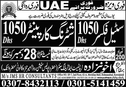 Akhunzada Trade test & Training Center is looking for candidates for following posts as per job advertisement published in daily Express Newspaper of December 22, 2023 for location Sharjah, abu dhabi UAE: