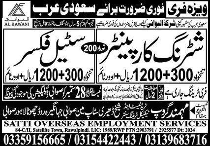 Mohmand Group Trade Test & Technical Training Center jobs advertisement dated about 26 September 2024 in daily Express Newspaper invites application for the vacant post of steel fixer and shuttering carpenter in Madina, makkah Saudi Arabia. Candidates with Matric, Middle and Intermediate etc. educational background will be preferred.