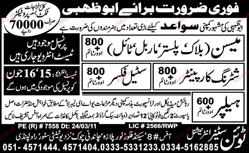 Steel Fixer, Shuttering Carpenter, Mason Job Opportunity