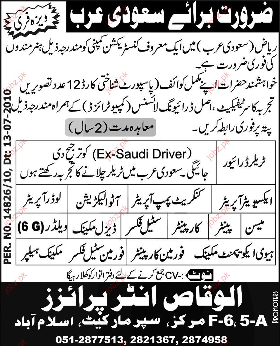 Steel Fixer, Welder, Loader Operator, Painter and Mason jobs