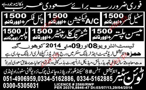 Steel Fixers, AC Technicians, Tile Fixers Job Opportunity