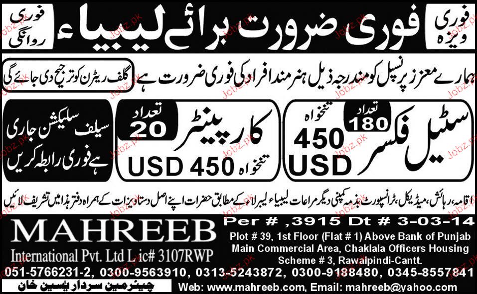 Apply as per details in job advertisement. Login to view further details of how to apply via https://www.jobz.pk online.