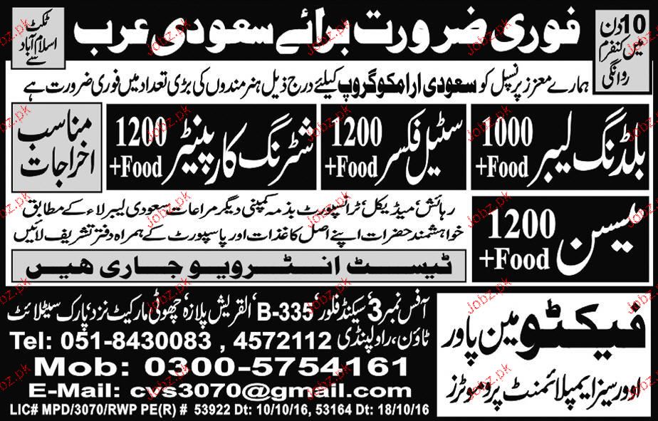 Steel Fixers, Building Labors, Mason Job Opportunity