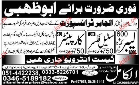Latest Private Company Labor Posts Abu Dhabi 2025