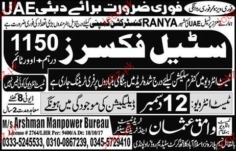 Latest Wamaq Usman Trade Test and Training Center Construction Posts Dubai 2025