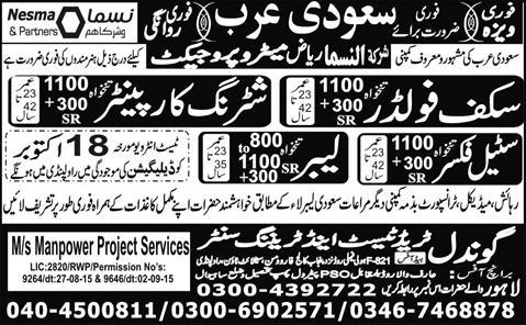 Steel Fixers, Mason, Shuttering Carpenters and Labors are required in Saudi Arabia.