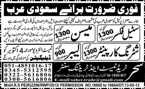 Steel Fixers, Mason, Shuttering Carpenters Job Opportunity