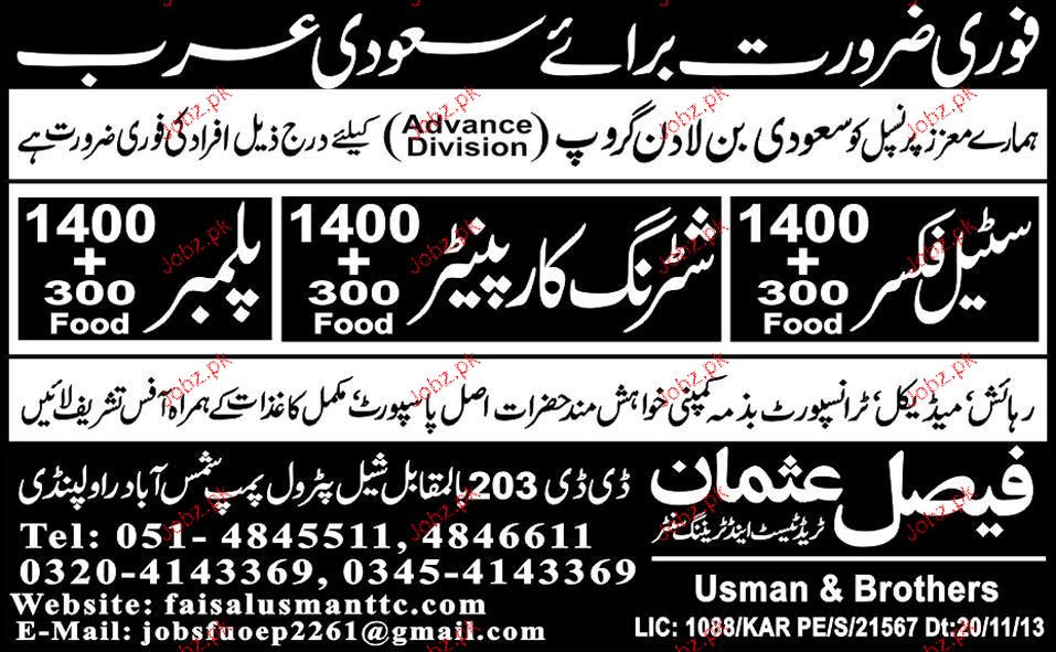 Steel Fixers, Shuttering Carpenters And Plumbers Wanted