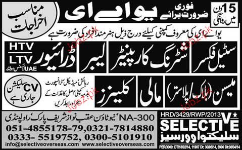 Steel Fixers, Shuttering Carpenters, Drivers Job Opportunity