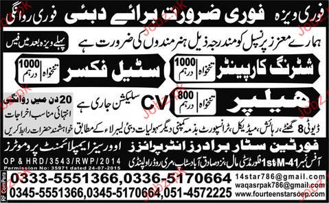 Steel Fixers, Shuttering Carpenters Job Opportunity