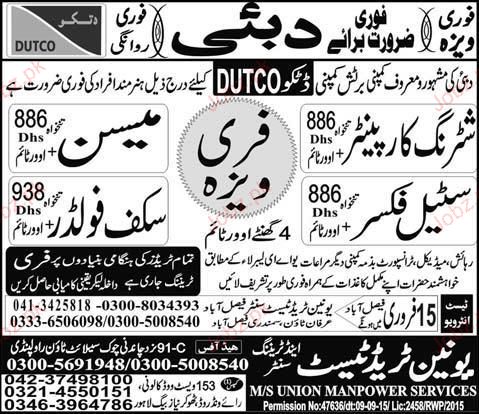 Steel Fixers, Shuttering Carpenters Job Opportunity
