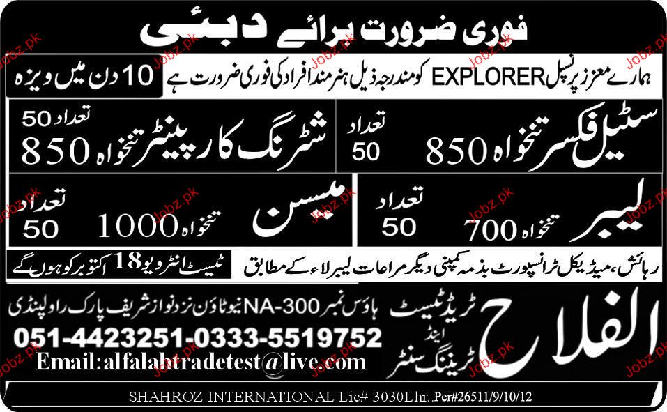 Steel Fixers, Shuttering Carpenters, Labors and Mason are required in Dubai