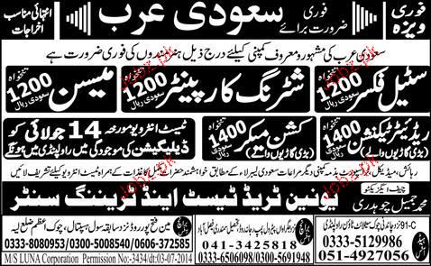 Steel Fixers, Shuttering Carpenters, Mason Job Opportunity