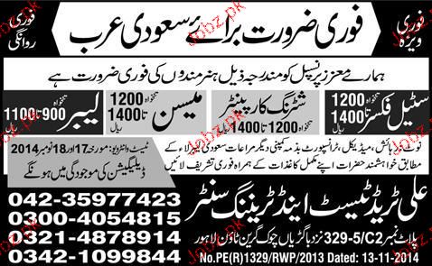 Steel Fixers, Shuttering Carpenters, Mason Job Opportunity