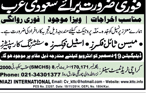 Steel Fixers, Tile Mason And Shuttering Carpenters Wanted