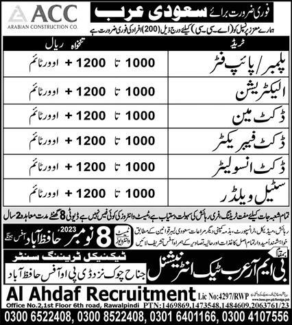 BMR Arab Tech International is looking for candidates for following posts as per job advertisement published in daily Express Newspaper of November 1, 2023 for location Riyadh, dammam Saudi Arabia: