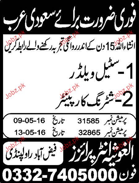Steel Welders And Shuttering Carpenters Job Opportunity