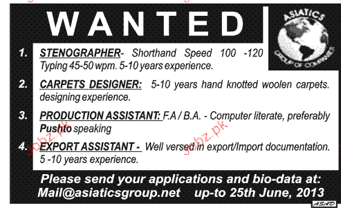 Apply as per details in job advertisement. Login to view further details of how to apply via https://www.jobz.pk online.