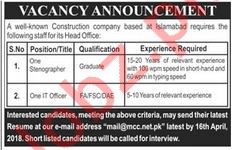Stenographer & IT Officer Jobs 2018 in Islamabad