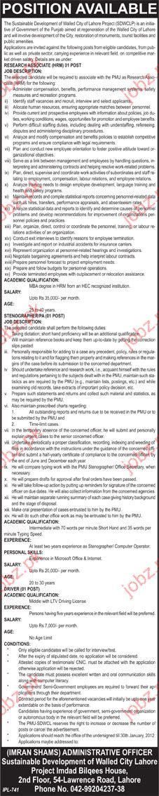 Stenographer| PA, Research Associate (HRM), Driver Required