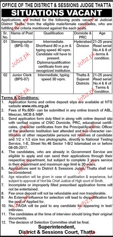 Apply as per details in job advertisement. Login to view further details of how to apply via https://www.jobz.pk online.