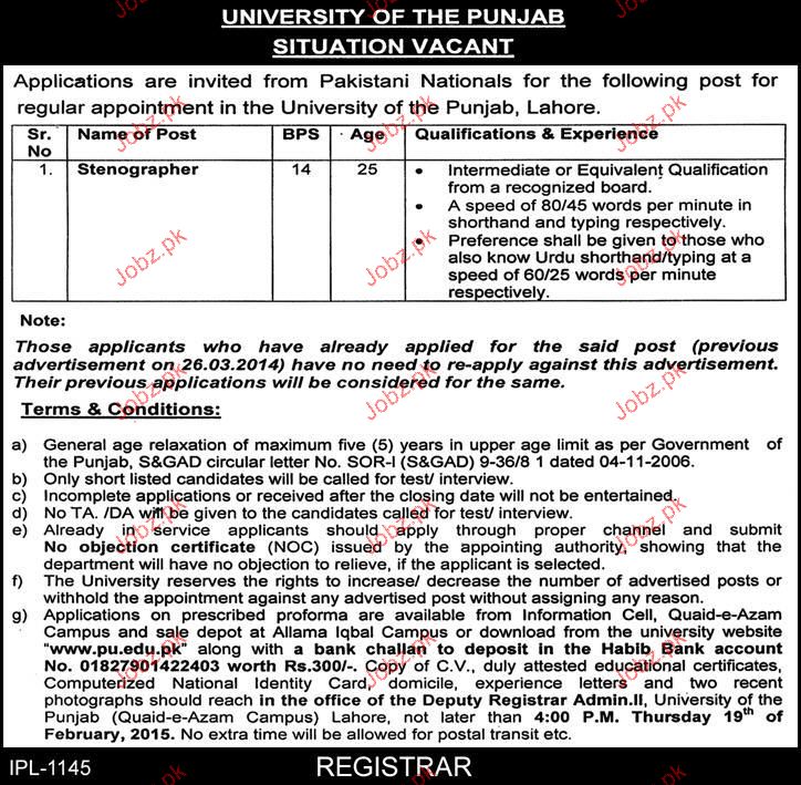 Apply as per details in job advertisement. Login to view further details of how to apply via https://www.jobz.pk online.