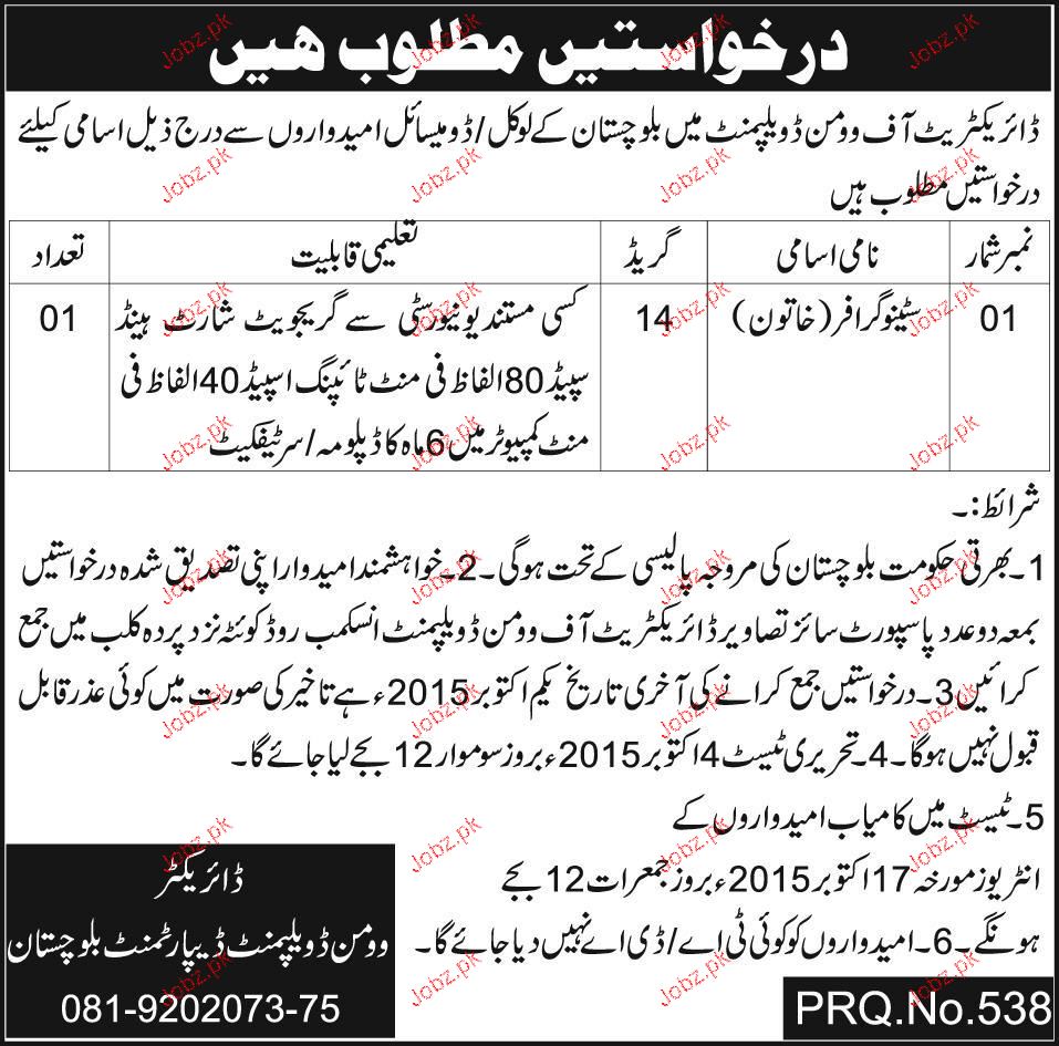Latest Government Department Admin Clerical Posts Quetta 2025