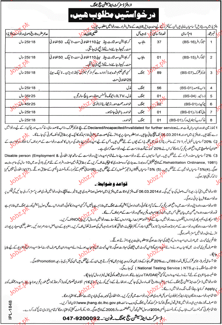 Latest Government Admin Clerical Posts Jhang 2025