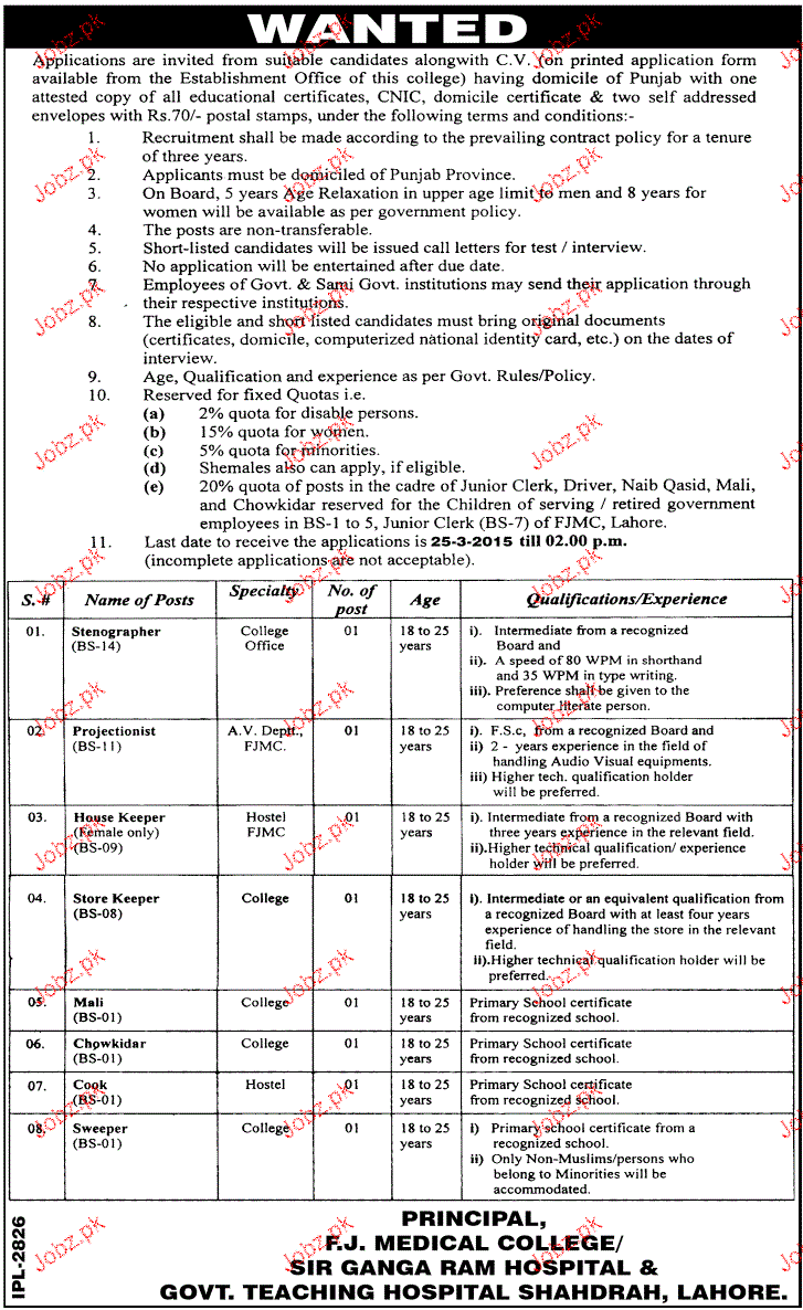 Apply as per details in job advertisement. Login to view further details of how to apply via https://www.jobz.pk online.
