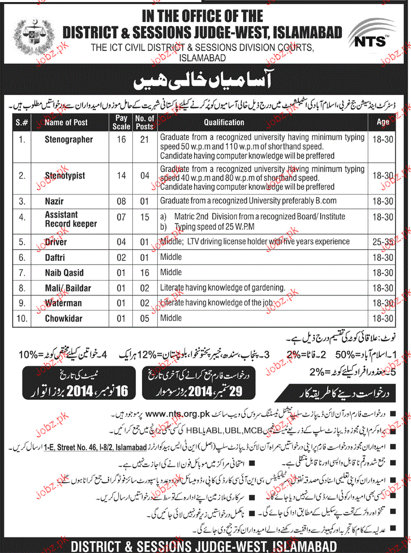Stenographers, Stenotypist, Nazir, Drivers Job Opportunity