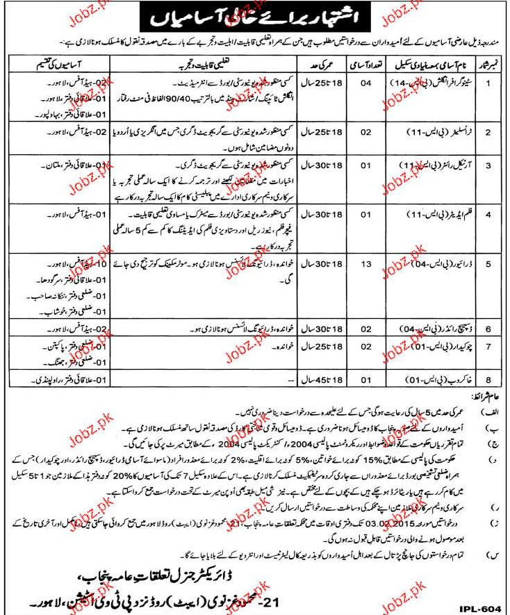 Apply as per details in job advertisement. Login to view further details of how to apply via https://www.jobz.pk online.