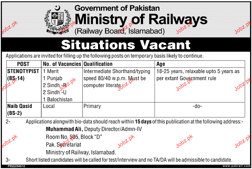 Latest Pakistan Railways Admin Clerical Posts Islamabad 2025