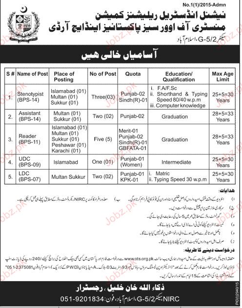 Stenotypist, Assistants, Readers Job In Ministry Of Overseas