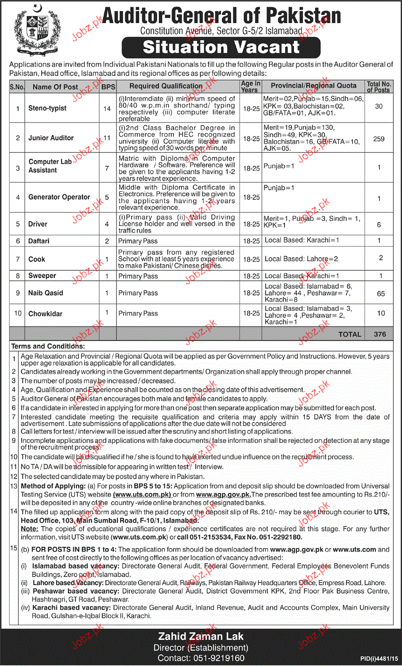 Latest Auditor General of Pakistan Admin Clerical Posts Islamabad 2025