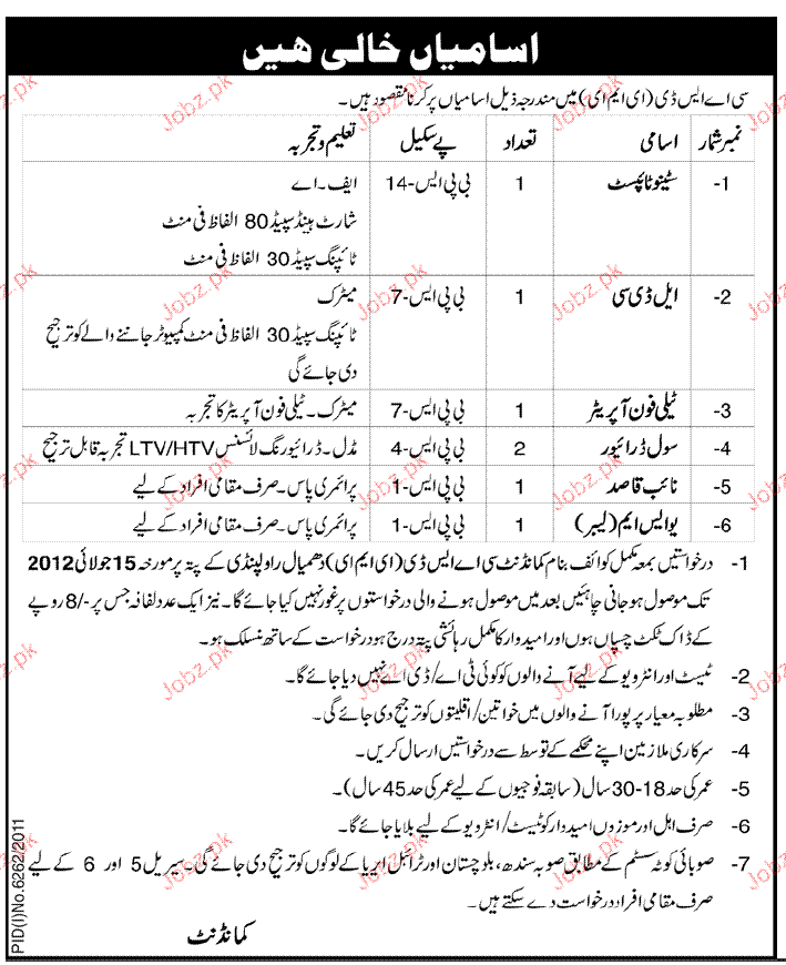Apply as per details in job advertisement. Login to view further details of how to apply via https://www.jobz.pk online.