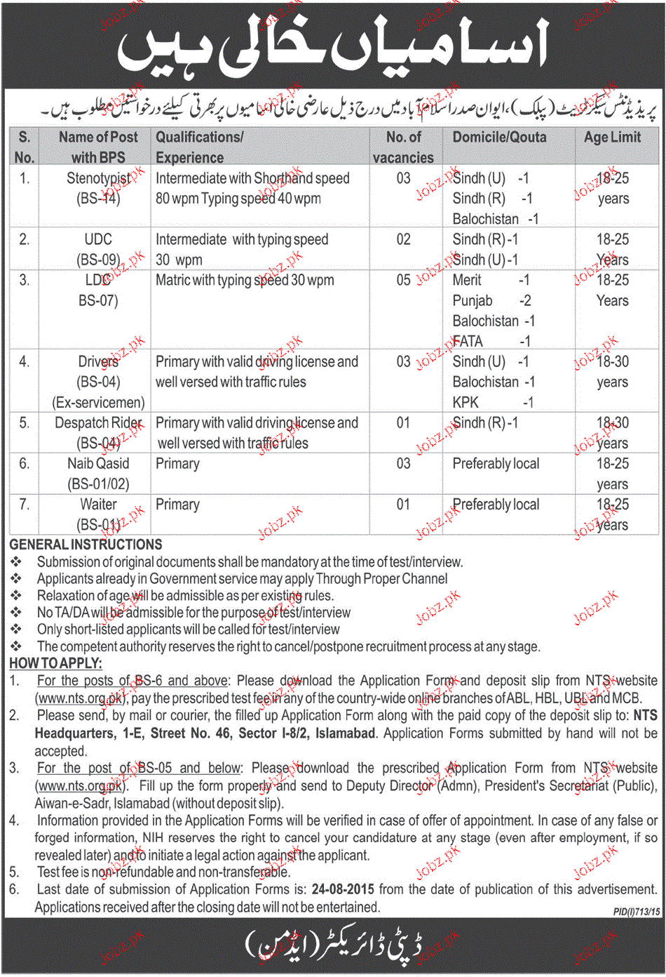 Apply as per details in job advertisement. Login to view further details of how to apply via https://www.jobz.pk online.